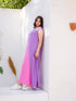 The silhouette is simple and refined, featuring a sleeveless A-line cut and a soft keyhole neckline. The magic lies in the color contrast: a serene lavender body is split by a bold fuchsia pink panel, adding dimension and character to every step. Subtle, hidden side pockets make it as practical as it is pretty.
